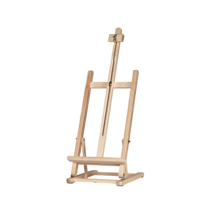 Επιτραπέζιο καβαλέτο από μασίφ πεύκο. Για βέλτιστη εργασία, αυτό το καβαλέτο έχει έναν κεντρικό πόλο με φορέα καμβά που μπορεί να ρυθμιστεί σε ύψος και γωνία. Χάρη στην πτυσσόμενη βάση, το καβαλέτο αποθηκεύεται εύκολα.