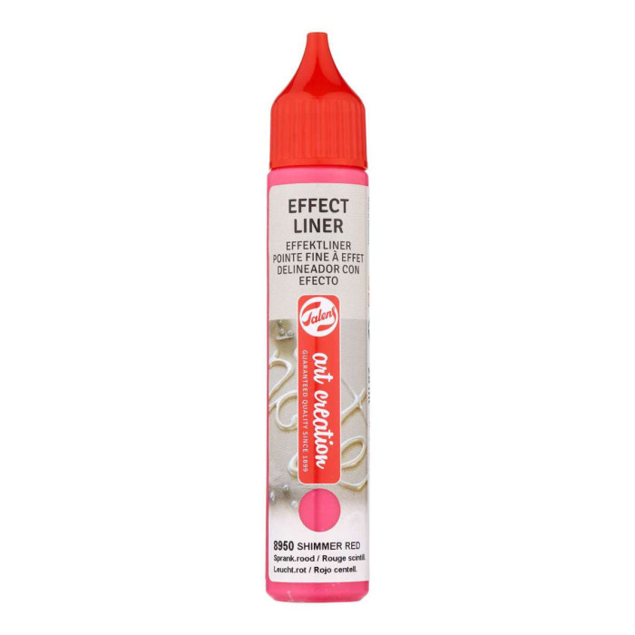 Μια ανάγλυφη επένδυση που μπορεί να χρησιμοποιηθεί για τη δημιουργία τρισδιάστατων γραμμών και κουκκίδων σε όλες σχεδόν τις ελαφρώς απορροφητικές επιφάνειες, συμπεριλαμβανομένων των περισσότερων υφασμάτων. Τα Effect Liners είναι εξαιρετικά κατάλληλα για τη δημιουργία ελκυστικών, λείων «μαργαριταριών». Για βέλτιστο 3D εφέ, κρατήστε την άκρη ακριβώς πάνω από την επιφάνεια και πιέστε το χρώμα προς τα έξω ομαλά. Χρόνος στεγνώματος: 24 ώρες. Μόνο για εσωτερική χρήση. Όταν εφαρμόζεται σε ύφασμα: πλύνετε το ύφασμα χωρίς μαλακτικό πριν την εφαρμογή. Πλένεται στους 40 °C. Διατίθεται σε 49 διαφορετικά χρώματα και διάφορα εφέ, όπως περλέ, λάμψη, γκλίτερ και νέον.