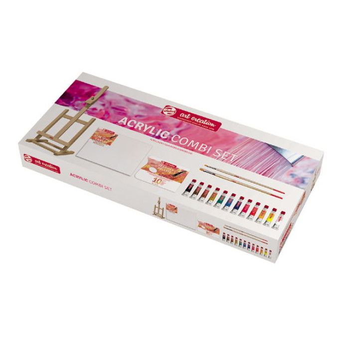 Αυτό το συνδυαστικό σετ είναι το απόλυτο σετ εκκίνησης για όσους θέλουν να ξεκινήσουν το ταξίδι τους στη ακρυλική ζωγραφική! Το σετ περιέχει όλα όσα χρειάζεστε για να ξεκινήσετε: ένα σετ ακρυλικών χρωμάτων με σωλήνες 12 x 12 ml σε βασικά χρώματα για να φτιάξετε την παλέτα σας, ένα εύχρηστο επιτραπέζιο καβαλέτο, έναν τεντωμένο καμβά 24 x 30 cm, 2 ακρυλικά πινέλα ζωγραφικής και ένα χάλι -Δωρεάν παλέτα αποκοπής.