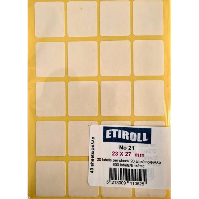 ΕΤΙΚΕΤΕΣ ΛΕΥΚΕΣ Νο21 23Χ27ΜΜ (24 ΣΤΟ ΦΥΛΛΟ) -( ΣΑΚΟΥΛΑΚΙ ΜΕ 40 ΦΥΛΛΑ)